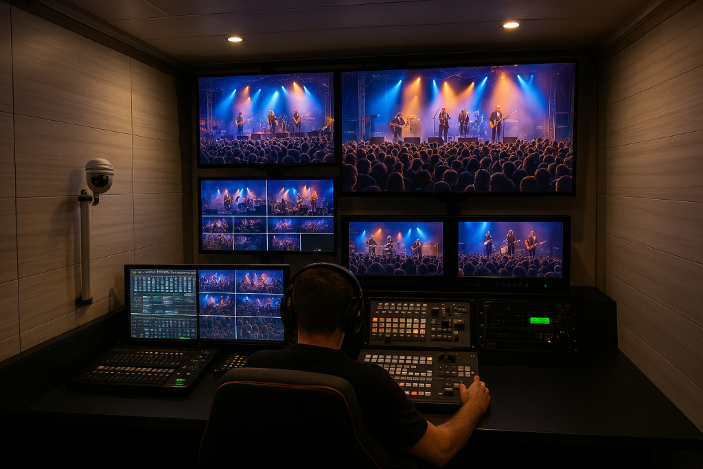 - Regie: Binnenin volledig uitgeruste videoregiepost met meerdere schermen en communicatie middelen.